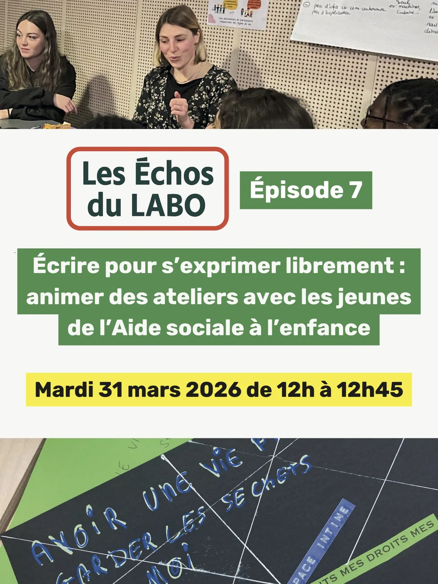 Rendez-vous le mardi 31 mars 2026 à 12h pour 45 minutes d'échanges autour des ateliers d'écriture menés avec les jeunes de l'ASE. Inscription : rendez-vous ici !