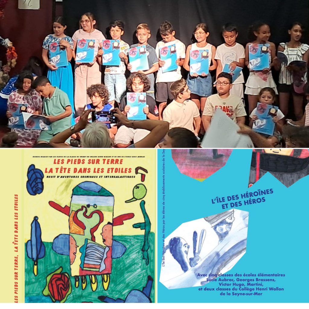 À La Seyne-sur-Mer, deux projets d’albums illustrés ont été développés de janvier à juin 2025, impliquant 173 élèves de 9 classes, issues de 4 écoles (Lucie Aubrac, Georges Brassens, Victor Hugo, J.B. Martini) et du collège Henri Wallon, dans le quartier Berthe.