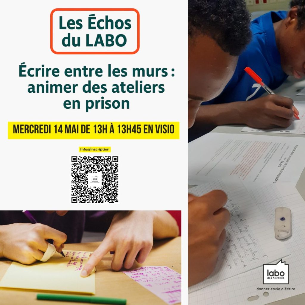 Rendez-vous le mercredi 14 mai de 13h à 13h45 (7h en Martinique, 15h à La Réunion) pour un premier épisode baptisé "Écrire entre les murs : animer des ateliers en prison”. Pour s'inscrire, rendez-vous ici !