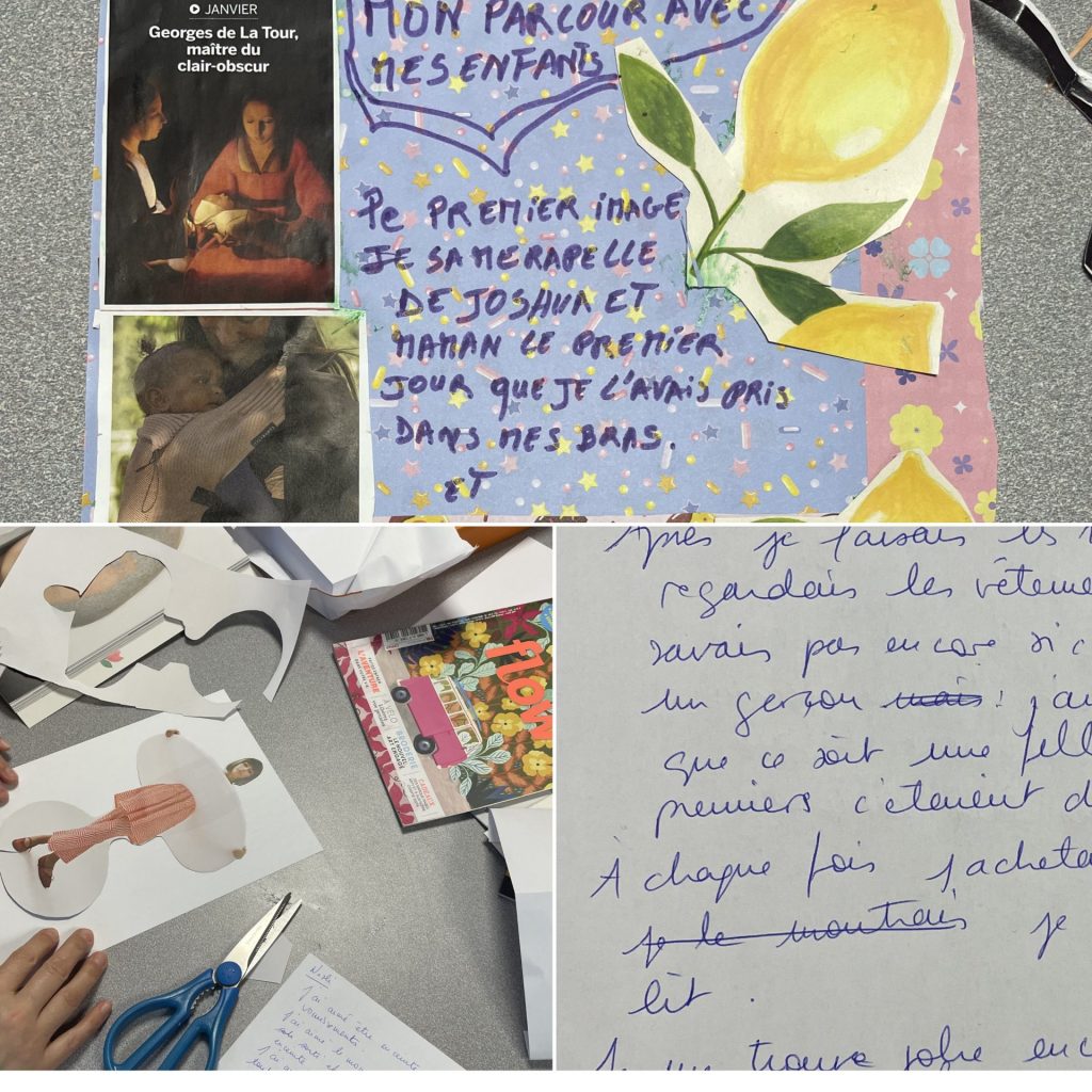Les ateliers révèlent des thèmes récurrents, comme la première rencontre avec son enfant ou le rapport au corps pendant la grossesse. Au fil des échanges entre les femmes, un climat de confiance s’instaure, les récits prennent de l’ampleur et deviennent parfois douloureux. « Quand on creuse, on se rend compte de la complexité de leur parcours de mères. »